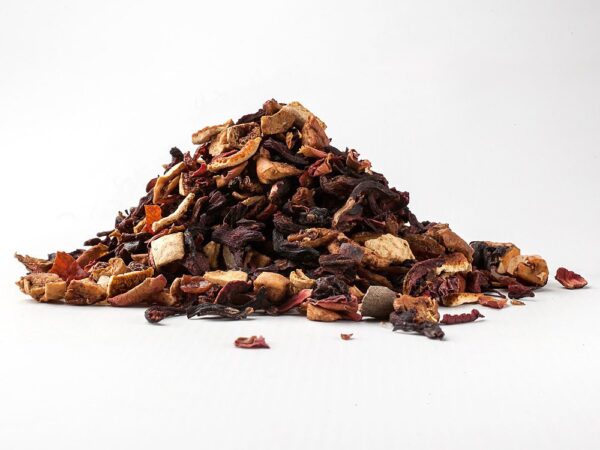 Popis Jablko, ibištek, hrozienka (hrozno, slnečnicový olej), plody ruže, pomarančová kôra, ananás (ananás, surový trstinový cukor, regulátor kyslosti, kyselina citrónová), papája (papája, surový trstinový cukor, regulátor kyslosti, kyselina citrónová), ruža, jahoda, malina, vôňa. Bez kofeínu. Nutričné údaje na 100 ml: