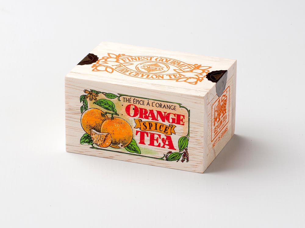 Popis Prírodné esenciálne oleje z pomaranča a korenia harmonicky kombinované so špeciálnou odrodou FBOP (Flowery Broken Orange Pekoe) pre aromatický čaj z oblasti Dimbula na Srí Lanke v nadmorskej výške 1500 m