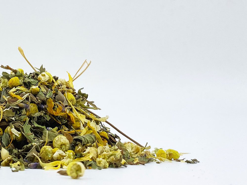 Popis Listy mäty, harmanček, listy černice, medovka, listy jahody, lupienky ruže, kvety pomaranča Výživové údaje na 100 ml: